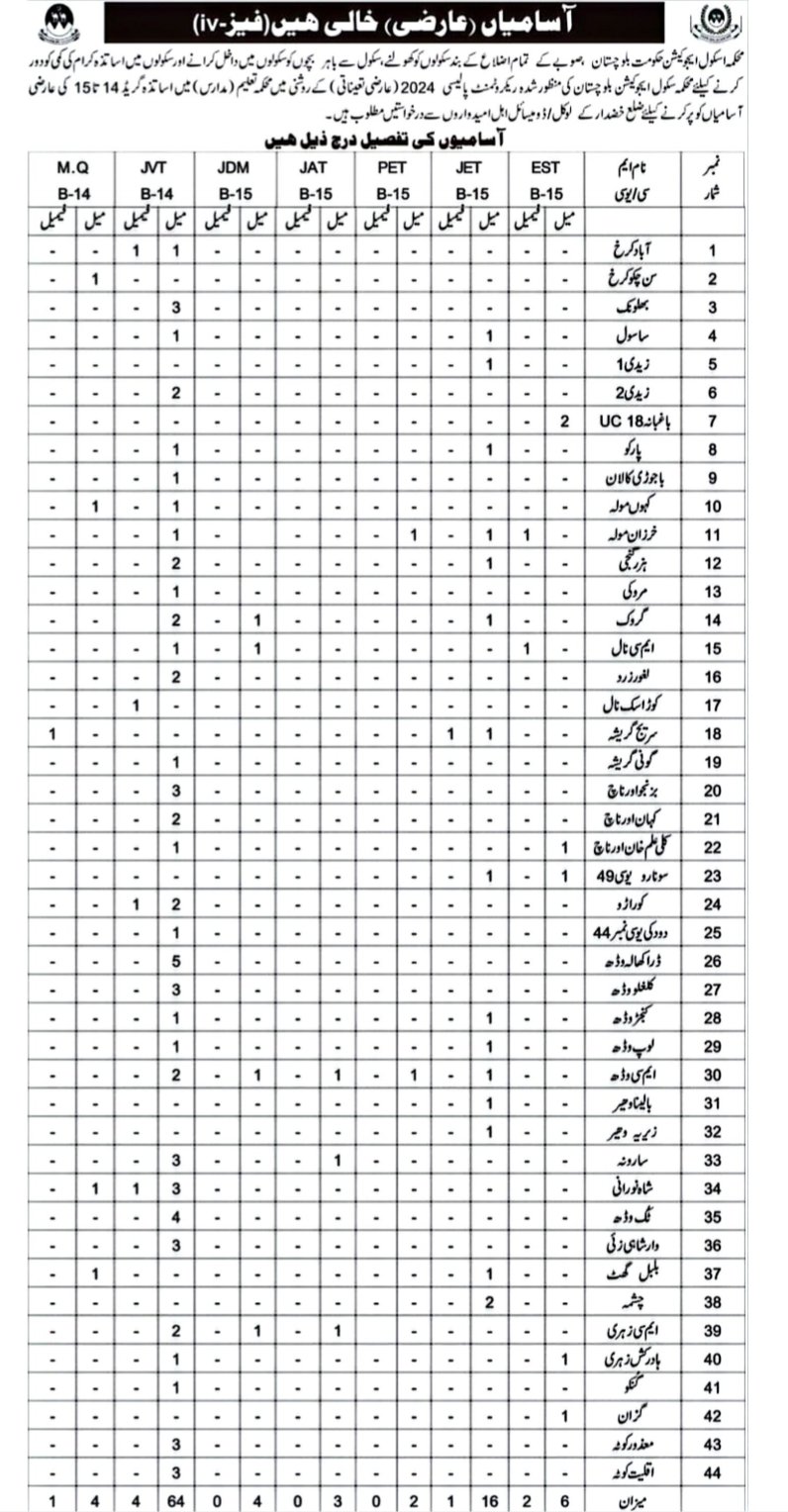 Multiple Teaching & Non-Teaching Vacancies (BPS-14 to BPS-15) The Government of Balochistan has announced multiple vacancies in the Education Department for qualified and eligible candidates.