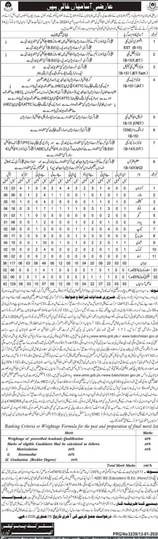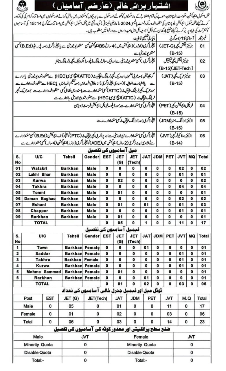 The Government of Balochistan has announced Teaching Staff Vacancies 2026 under the School Education Department for various districts across the province. These positions aim to