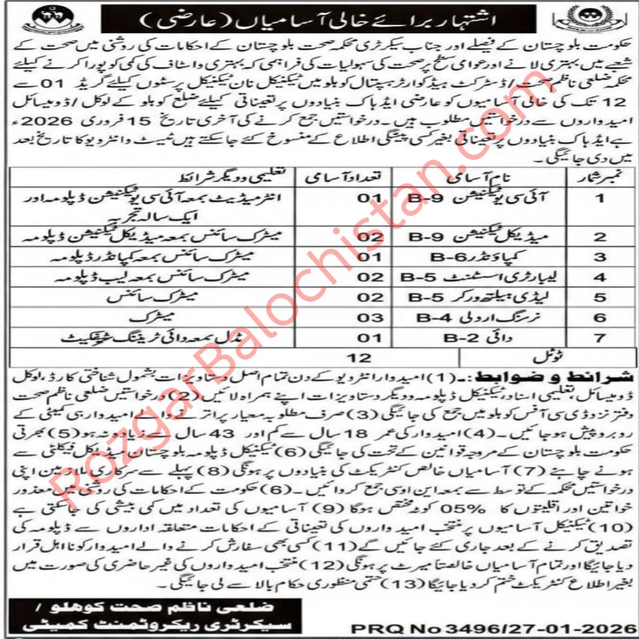 📢 Health Department Kohlu Jobs 2026 Announced The Health Department Kohlu, Government of Balochistan, has officially announced new job opportunities for eligible candidates under emergency