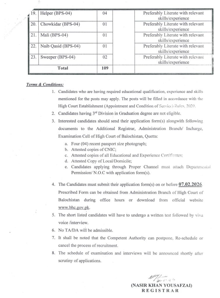 High Court of Balochistan Jobs 2026 Official Advertisement