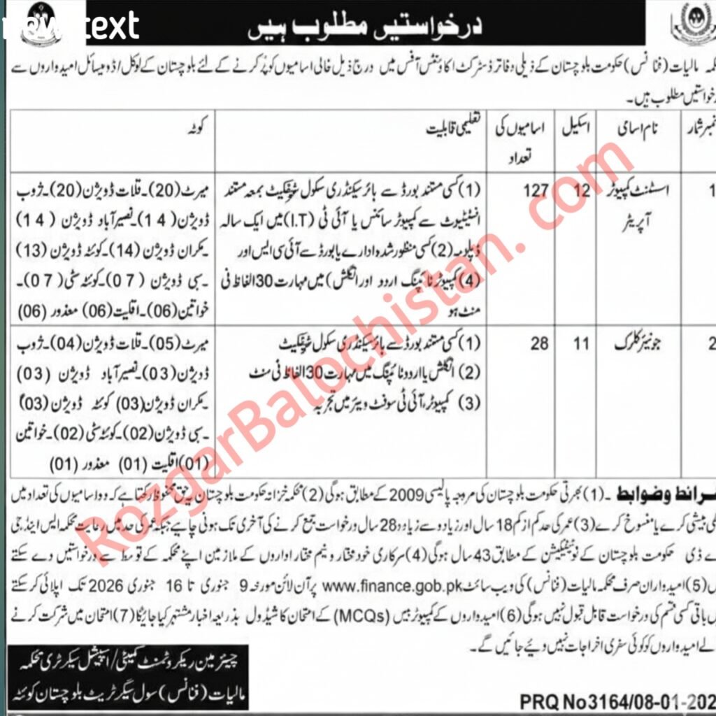 Job LocationVarious Districts of Balochistan